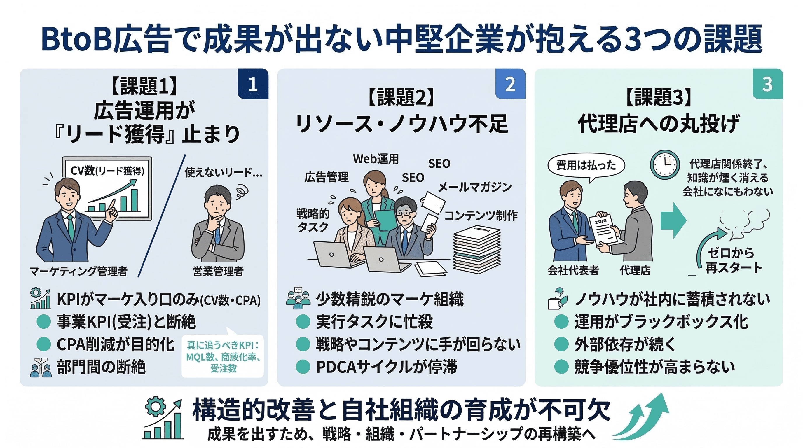 BtoB広告で成果が出ない中堅企業が抱える3つの課題