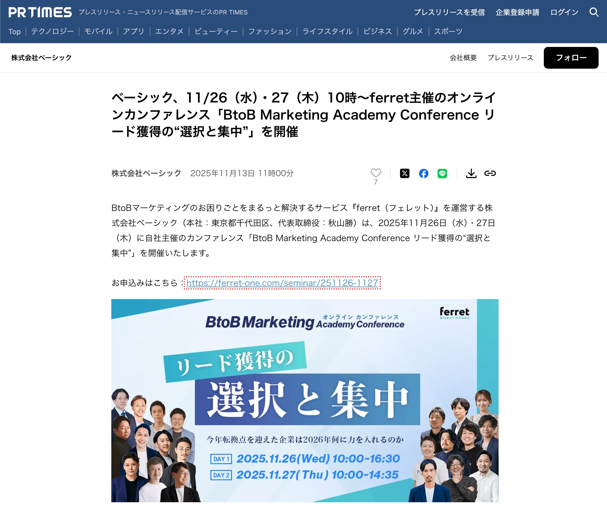 ferretでは、イベントの出展・開催情報などを積極的にプレスリリースで発信しています。