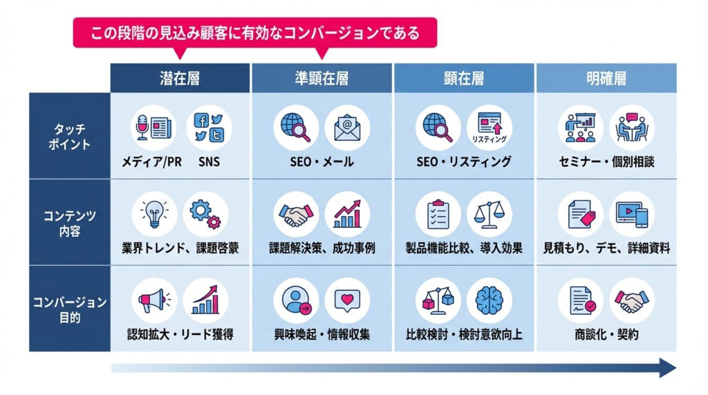 ホワイトペーパーは、獲得したリードを顧客へ育てる「ナーチャリング」や「セールス」の強力な武器になります。メールでの追客ネタとして活用したり、商談時に営業ツールとして提示したりすることで、顧客の検討度合いを自然に引き上げ、受注へ繋げるコンテンツの一つです。